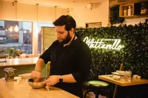 Absolute disaster of "cooking class" and birthday dinner. We booked a private cooking class and dinner from 6 to 8 pm for a friend's birthday. What we got was chaos, disrespect for time, and a staff that cared as little about the quality of the food as they did about service. We arrived at 5:30 pm as instructed and instead of the "private event" set up that had been promised and paid for, the space was still occupied by a children's birthday in full swing- kids everywhere, parents milling around. We though "OK, they're professionals- this will be cleared out and ready by six." Nope. Instead, our 25 guests were awkwardly crammed into a small side room with no sign of the party winding down. At 5:58- they bring out the cake. So 6:05, 6:10, 6:15 6:20 still kids, still cake, still yelling (kids being kids) and still 25 adults corralled into the tiny side room. Finally at 6:30, the parents start to pick up their kids. No urgency. No apology. No attempt o fix things. Finally at 6:45 we the "class" starts with the bare minimum of instruction. No sense that anyone was teaching anything. We didn't learn a thing. We were just vaguely handed tasks and left to muddle through. Mix an egg with some flour and extrude through a press. Still more chaos, unclear how we pick the pasta, what sauce, what preparation. The pasta? Edible, forgettable, and not served all at once. The last person was served 40 minutes after the first person, when everyone else had already finished, no attempt to pace the service so we could eat together and of course, no explanation, no apology for any of this. By now, no one is having a good time, everyone in antsy, just bring out the dessert and coffee and hopefully we can forget about this huge waste of money. But no- the server said literally, like actually words that came out of her mouth- "I don't know how to make coffee." I brought over another guest to make sure I heard correctly. OH- and was the time for our private event extended because we didn't get started until 6:45- NO, because they had another "private event" coming in at 8, so we overlapped with them for an hour. A $400 gratuity for barely any service in addition to $80 per person for below average food. What a sloppy, amateurish, and embarrassing place. Save your money. Save your time. Save your birthday
