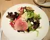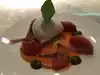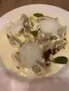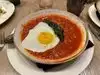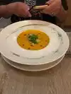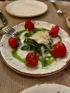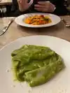 Had pasta with lamb ragout (with a fancy name, of course). Meat was good. Pasta i can‘t judge. Sauce very flat with no remarkable flavors. Waiters very attentive, but also too aggressive. When my peer had finished his dish and I had one or two spoons left, the waiter picked up my peers dish and offered with a gesture that he could wait for me to finish my dish. Had pistachio for dessert. A little too sweet, but with very fresh strawberries. Espresso mediocre.
