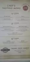 Extensive dinner menu with lots of great choices of Italian dishes. We came back several times to try different items. Everything was very special and very tasty. Our compliments to the chef.