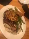 Corner suite on main road. No restaurant parking. Lots nearby to park at- paid parking but free at certain times. First impression visit. Order (📸): 2 drinky drinks, Lemon Pepper Wings, Salmon with whipped potatoes and asparagus, "The Manhattan" NY Strip with green beans and whipped potatoes Total = $104.58 Pros: Nice dim and calm atmosphere. Special attention to their beers and beef. A cute place for couples or a chill laid back vibe. Cons: No restaurant parking. Drinks came after our food even though it was not crowded. You can tell how empty it was by the pictures. Would I Recommend: No due to lack of parking and service. Food dishes are common - you can get these dishes anywhere.
