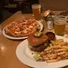 Stopped in twice in the same day. Both times trying different beers that are crafted in house. Great tasting. The two burgers I had were both bison and one had pablano peppers and the other was blue cheese and bacon. Both were seasoned well and tasted great. I'll definitely come back to try more selections that are there to offer. The table next to me had pizzas that looked and smelled great too.