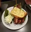 We dined here for both lunch and dinner. Dinner was great with pastrami sandwiches and cocktails... fun to sit at their bar! But, lunch a few days later was a disappointment. Both the burger and meatloaf had ground beef that was tough, very chunky, with bits of gristle and bone... unappetizing. The fries were just average and the iced tea was tasteless (watered down). So, we're rating them just Average overall for food quality. Friendly, attentive service. Lots of interesting choices on the menu. Off-street parking. Popular and very busy!
