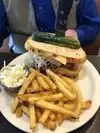 Fantastic food, huge portions, the pastrami was my favorite. I also had the turkey club, it was oversized as you can see. They also have desserts and shakes that looked incredible but we were too stuffed to have any. Sandwiches were about $12-13$ each and come with a pickle and a side of Cole slaw. Also serve some Frank's, huge variety of breakfast, meatloaf, other traditional American, some italian like meatballs, and I even saw chicken and waffles. The old school style diner theme was a bonus. Place been here for decades, owners are a pair of immigrants who worked hard and built something truly unique. Come here before a movie !