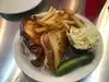 This is the third or fourth time that I have eaten here because this is where my friends want to meet . Each time I come I order something different to see if I was just ordering the wrong dish. Each time I was disappointed. They get an A for presentation then everything else is a busts. Chicken was overcooked each time thus tough and dry. Beef sandwiches are tough and very stringy. Fries, both sweet potatoes and french fries are frozen fries not fresh.