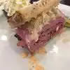 We have bought bagels there a number of times and loved them. They usually do a bakers dozen (13). This was our first visit to sit down to eat. We had to wait 45 min in the middle of a Saturday afternoon. We should have reserved on the app. We each had Reuben sandwich’s. My wife’s had a mix of corned beef and pastrami and mine was all corned beef. I had a Dr Brown diet cream soda that I had as a kid. The sandwich’s were great. A woman a nearby table had a burger fries and shake all served in a giant shake glass. Looked great! Our server was attentive and polite.