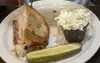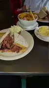 on our recent visit we had the meatoaf and she had the pastrami on rye .. My meatloaf came with a big heap of mashed potatoes and three patty shaped pieces of meat loaf covered in a brown gravy with onions ...i opted out on the mushrooms . (the meatloaf sort of looked like chopped steak patties , but it works ) the pastrami sandwich was ,as usual over loaded with meat . There sandwiches are always a hit because of the flavor and the value for the price . We had to bag up the leftovers as usual since the servings were always huge . Thisplace has never let us down , always great service and great food .