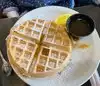 The menu has many options, and as I looked around I saw huge plates with large sandwiches and other tasty looking meals. Chicken and waffles are one of my favorite things to eat, so I ordered that. I wanted to make sure that I didn't overeat, and that I'd be able to have some dessert, so my daughter and I decided to share them. This is a new item on the menu, and I assumed it would be a decent sized meal since at every other restaurant it's always way too much food for one person. Unfortunately, that was not the case here. When the waitress handed me the plate, I thought she was going to hand my daughter another plate with the same thing on it, (since we told her we were going to share.) For $14 we got one large, not oversized, waffle and 3 scrawny 2 1/2 inch chicken strips. I looked at my sisters build your own grilled cheese, and my mothers chicken salad sandwich and thought "WTH?" Even the spaghetti my younger daughter ordered from the kids meal had more food on it than mine did. It did taste good, but I thought it was a huge waste of money. The other three plates were heaped with food, and no one was able to finish. We practically licked our plate clean, and we were still hungry. Plus, we had spent almost twice what they had on their dishes. I'll probably return to this restaurant, but I'll never order that dish again. Also, they charge $3 for soft drinks, so be aware. Our waitress was friendly and got all of the order correct, so kudos to her.