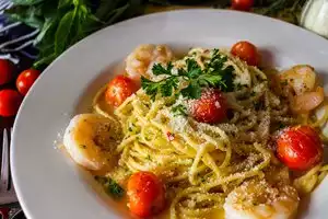 We got Margherita pizza and cheese pizza. Both of them were really good. We also got meatball marinara app. Meatballs were very good, and we especially enjoyed the sauce. One of us also got the shrimp scampi. Excellent spice and flavor. Everything we got was excellent quality and the wait staff were all great, as well.