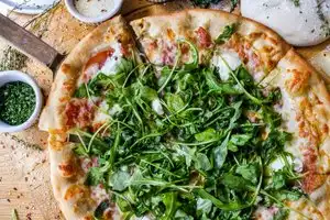 A baked pizza that is crispy and with a lot of flavor. We went with my wife for lunch. The service is fast and very attentive. For starters we ordered a Caesar salad and then a prosciutto, arugula and caramelized onion pizza. Everything is excellent, I totally recommend it