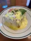 The food was delicious, the service was excellent, and the atmosphere was welcoming. We did have a small wait to get in, but we just walked the promenade until our table was ready. Once inside, the menu was every descriptive and made it hard to decide what to order. Everything that we ordered was visually appealing and so delicious. The server checked on us multiple times throughout or meal and was quick to refill drinks. I can't wait to visit again.