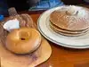 After being greeted by a rude hostess. (At this point we should of left and went somewhere else) I don't mind the 20 min wait, this is COVID. We sat and ordered. Nothing outstanding. Two breakfasts: one eggs scrambled, bacon, pancakes with side of toast/ The other sunny eggs, bacon and pancakes. Waited over 20 mins for our food to arrive. It arrived cold. Besides taste the eggs were congilled. The pancakes, the butter wouldn't even melt on them. They messed up and put one choc chip pancake instead of two regular. We did not go back for anymore breakfast or any other meals. Not a great experience.