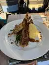 Had high hopes for this well reviewed restaurant. However, we were immediately greeted by a rather snotty man. For clarification when they say the casual bar menu is available in the “bar and lounge” until close, what they actually mean (apparently?) is sitting AT the bar. We were planning to snag a table in the lounge and ordering from the bar menu, but the snotty guy informed us our only option was sitting at the bar (mind you, the restaurant was nearly empty). So we said we’d be seated at a restaurant table, might as well sit outside. As he led us to the table, I asked if the bar menu was only available if seated at the bar and he huffed and rolled his eyes and told me he would bring me one. So ... that’s what we ordered from! Our server was much more cordial than the grumpy gus whom we first encountered. I was interested in the mussels but advised they “take a long time” so I ordered something else. My husband’s tarte was the star, though. We did end on a high note, splitting the flourless chocolate cake. And it was a nice ambiance with a view of the water. The patio is surrounded by galvanize steel planters brimming with wildflowers. Even ordering off the bar menu (two entrees, two starters, four drinks, split one dessert) our bill topped out at $150 before tip.