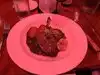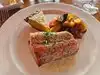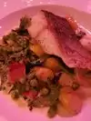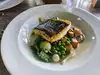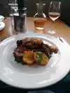 We sat outside in the terrace, weather was nice. We both ordered Lamb chops with ratatouille Food was really great Low salt at every restaurant we ate was a pleasant surprise and low sugar in most deserts everywhere we ate was also a pleasant surprise We ordered the cheesecake and chocolate ganache and coffee to end a great experience