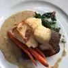 First the views from this restaurant are wonderful. I had the best seafood chowder I ever have had in the world and would go back just to have this soup again. My partner had the esgargot and quite enjoyed it. We shared a steak that melted in our mouths. Dessert was pastry filled with ice cream cannot remember what it was called but very very good. The service excellent and the selection of wines good.