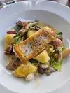Sadly disappointed and aghast at rudeness of main Mgr person in blue denim clothes.. Waiter was outstanding though. Food not so great. Doz oysters,4 of which reassembled those that had been dropped in schucking and put intl shells again. The waiter replaced 2. Nicoise salad: tuna was dry,partially frozen, limp salad and green beans, rubbery eggs....blah! Halibut was dry, flavorless.