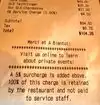 UNFAIR RESTAURANT IMPOSED TAX! DISTURBING to see that your restaurant has added another tax onto customers bill. I always pay 20-25% tip, but you are forcing me to pay 15% tip. SERVICE CHARGE is the tip expected by the SERVERS, for their service. The restaurant already makes money off of some food but mostly alcohol sales. Squeezing more money from customers is rude and a disservice to your employees. 🤬🤬🤬
