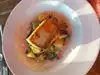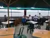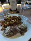 Great view of the water front.Nice seat out with umbrellas providing shade.We were sitting inside but with the sea-facing windows partially open and ceiling fan on,it was pleasant. Food was nice.Menu limited,also dessert menu. Salad portion rather larger than usual.I had ordered a steak.It was ok, drowned by a sea of fries,which should give some idea of the size of the steak. Did not have dessert,did not appeal to me. French bottled beer was like any normal lager,but never had French beer before. Service was efficient, smiles would have been nice had it been there.