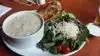 I went on a beautiful spring evening with lots of people enjoying the weather in the outdoor seating. I was seated in a relatively quiet booth inside. The server was very friendly and prompt. I ordered a half turkey sandwich with a peanut chicken soup -- really! At first I was served a tuna sandwich which I was pretty sure I didn't order, though turkey and tuna could sound similar. Anyway my correct order soon came, with apologies, and both the sandwich and the soup were delicious! I would order it again for the quality and the price -- a little over $7. My server checked back with me several times. It was a little slow getting my change back but all in all a pleasant experience.