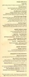 Pretty typical bar food menu. We were invited in a party of 21 and it is a rather small pub. What I really liked was they didn't even pretend to serve everyone at once. Instead they served 7 at a time with nice fresh hot meals. The service was excellent.