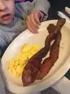 Got here and was seated quickly, but it took 5+ min for them to give us a menu..only to then be given the menu & immediately asked what we wanted. We hadn't been here before, so we wouldn't have known what we wanted...hence the menu. Finally were able to order, then food came out quickly, but took a while to get syrup with our meal. Pancakes were tough, but waffle was good. The best part of the meal was the bacon - crisp and juicy!! Our server just didn't come by very often. She seemed to be focusing on other parts of the restaurant and not our section (I think she was waiting on the whole restaurant). Also the bathroom doors didn't have locks or even close really, soap was in a ketchup style squeeze bottle, and no paper towels (blow-dry thing didn't work either). Overall, don't plan on visiting again. We had just gotten in from a very long flight and had not eaten for a while, and were craving breakfast. Better service would have been much appreciated to help us feel better from our travels.