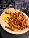 Ate a late lunch here and the food was yummy. We just had burgers/fries and were full when we left. Fries are big & fat and very tasty. The sodas are served in PITCHERS accompanied by a straw. It's all for one person! The venue is long & skinny---sort of like in New York, with a narrow street view footprint. We kept seeing people going up & down a very narrow flight of wooden stairs & finally asked----the office & storage were up there. Two servers were working hard, but you just have to be patient and wait your turn. Other offerings were meatloaf and lots of sandwiches. Nice bar as well, with some upscale mixed drinks offered. Great place for any neighborhood!