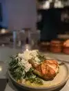 Very tasty food. Every dish we had was absolutely delicious. My favorites were the meatballs, cheese plate, and the salmon. The meatballs and cheese come with bread which was a welcome surprise. However, the service could have been better. Also, you need more than two co-ed bathrooms for a restaurant of this size in my opinion. Overall, great place though.