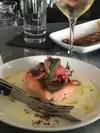 The food was delicious and nicely presented. We had warm olives, hummus, Moroccan brick chicken and octopus. Nice selection of wines by the glass. The plates are small sharing plates but the price point is quite high for the size of the portions. I was served a sparkling rose that was completely flat. It was quickly replaced but should never have been served at all. Quite noisy and difficult to have a conversation. Service was attentive.