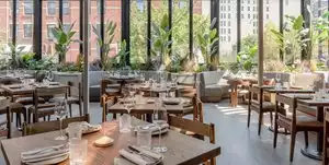 Mixed feelings here. The interior is beautiful, with earthy tones and fresh greenery, and perfect lighting both artificial and from the vast glass ceiling. From the beginning though the service was odd; we arrived 5 minutes before the opening, and instead of being ushered into the bar to wait we were advised to wait outside on the street; margins on drinks are amazing right? We were then shown to our table in the darker, bar area while all other parties were shuffled into the main, bright dining area described above. We assumed it was because we had our two children, aged 10 and 12 with us; nobody's fault that they don't know how well behaved they are, so we just asked if we might move. One guy went off to ask at the front desk. Another felt the need to point out "we cannot promise anything", and then the first came back and said "you can go and speak to them at the front desk" ... OK... thanks... I went up to the front desk where I was told "Sure! Just bring your family and follow my colleague"... a good result, but just super clunky execution. The menu is very deep and varied, but we felt it was a little odd that per our server the 'chef's advice' was to take dishes from every section of the menu. He suggested raw bar, mezze, salad, starters, meat mains including a 40oz. steak for 195 dollars, fish mains, various sides. Only odd because it would be a gargantuan amount of food, especially with two young kids in tow. But none the less we got stuck in and ordered a good variety, and on balance the food was very, very good. We are perhaps spoiled having lived in Europe, so we could not give 5 stars to this, given how expensive it is, but at the same time we could not really fault it as such. There was a mix-up with our food order and a couple of tables close by, and while mistakes happen of course, there was no apology or finesse in the service. Another small detail was that we ordered a bottle of sparkling water at the beginning, and had decided not to get more, but we were served another without having been asked. I would prefer to be asked if I am to spend more money; albeit not a game changing amount, but I am the customer. In addition, our server went around filling our glasses, and had not followed that our youngest boy was drinking iced tap water. So that was half and half and effectively a waste. Again, small details, but at these prices it needs to be better. Overall this is an amazing place with a great vibe, including DJ, and beautiful aesthetics. Obviously it feels like they're catering to younger crowds and I am sure in the evenings the atmosphere is brilliant. However, they just seem a little too in love with themselves, which puts us off loving them; if they tighten up the loose ends on service and character it feels like we would be easily seduced.