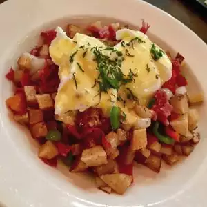 Went for brunch enjoyed the bottomless mimosas and the Bloody Mary’s were excellent. We ordered the the cornedbeef and side of bangers. Waitress was cheerful and nice.