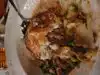 When you walk in you immediately notice the dark imported wood fixtures and trim that give this place a real pub atomosphere. We were there for lunch and just beat the local lunch crowd. They have some express lunch specials but we both went for the bangers and mash. A huge pile of mashed potatoes, three large bangers, peas and a mushroom gravy. Pretty well old style food. The bangers were very authentic, mash good but the peas were undercooked and the gravy a little man made, i.e. not homemade from rendered juices. Still a meal we enjoyed with a god pint of Smithwicks!