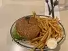 Atmosphere and service were wonderful. The burger was a bit dry. Fries are cooked in same oil as fish, so not really vegan there. Juke box was a nice touch. Bathrooms need to be renewed.