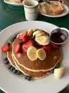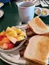 Went here for breakfast. Excellent service and food. I had the Elvis scrambled eggsd eggs which also came with toast, and my wife had pancakes topped with fruit. This is not the place to go if you want a low calorie diet. We finished as much as we were able and as the title suggests , we did not eat lunch that day