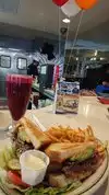 This was our first place we tried the food at on our arrival . We ordered the burger and the turkey club sandwich . The turkey club was massive but very dry. The food looked looked great in photos taste horrible . The burger was burnt on the outside very pink boarding lining raw in the middle left most . The shakes were great but apart from that I wouldn’t recommend this diner . Pretty expensive too. Be careful if you plan going early for breakfast or late at night a lot of homeless people outside and across the street from here .