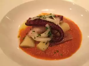 It is very popular, and the tables quickly filled and then it was so noisy, it was difficult to have a conversation at the table. The BYOB option is nice for many. The staff is very friendly and efficient. We found the menu to be very interesting. Most things were very good, but some were less so than expected. The wild boar pasta was the best. Second to that was the lamb osso buco. Octopus is a favorite of mine. If lightly grilled and not overly cooked, it is tender and wonderful. This was red as if boiled and was rubbery (overcooked in my book). The breaded and fried sardines on a salad were a bit more fishy tasting than I like, but this was cut by the vinegared onion salad on which they were served (there were other things like small tomatoes and pickles, but mostly it tasted like onion). The steak was perfectly cooked, but way over salted for my palate. If I return I would not get the latter three things again nor recommend them.