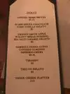 BYOB Table of five, very comfortable, excellent service. Menu includes gnocchi, ravioli and cacio et pepe, as well as pork and lamb chops. Varied appetizers plus gelato, tiramisu, and sorbet among other desserts. Very pleasant. I would see if other pasta were options to the thick spaghetti served.