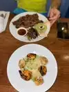Excellent hummus. Husband had octopus and raved about it. The risotto was good, lamb burger was a bit too much garlic and too spicy hot. Tapas selection was excellent. Nice server fast and friendly. Reasonable prices