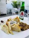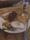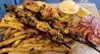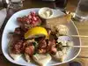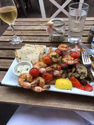 Had the mixed grill w lamb gyro, chicken and pork skewers, fries. Tasty overall. Cool and authentic feeling vibe. Off the cut,so to speak, in a little private alley/courtyard off the main street.