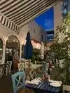 We were staying at a nearby hotel and found this restaurant on a map search. We almost missed it because it was in a really charming outdoor area behind the buildings on the street, which made it a lovely surprise. We waited for a table outside by sitting at the bar and having a Greek beer. Everyone was very friendly and accommodating. We loved the outdoor seating and the food was excellent.