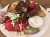 Had lunch and enjoyed the Gyro platter, for two... with Lamb, chicken and pork. This easily could have fed four and was SO tasty, with two sauces beyond just Tzaki. Also enjoyed the generous Greek Salad and Appetizer of three greek sauces. Great service, value and atmosphere.