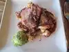 I arrived at this open air dining venue around 5:30 and found plenty of open seating. By 7:00, the place was pretty full, though it looked like there was still more seating available at the high tables. We split an order of carnitas between us and found it to be tender and flavorful, nicely-prepared, a bit on the sweet side. The staff was very friendly and attentive. In the bustle it could be a little difficult to carry on a conversation without raising one's voice but a positive experience overall.