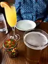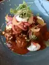 Delicious drink! But I didn't even get to try the food because it was too busy at the bar to place an order. The bartender was SERIOUSLY overwhelmed just trying to keep up with drink orders. He was pleasant though and the drink was tasty - their signature Mercat Gin & Tonic. Downtown Chicago pricing though, $14 for one drink. Maybe try it for lunch when it's less crowded.