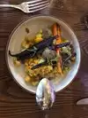 Tapas galore! My son and I ate dinner here on a Monday evening. We had a reservation even though the restaurant was just across the street from where we were staying. It's located in the Blackstone Hotel and has an eclectic bohemian vibe. There was no wait for our table and the restaurant was full, but not overly crowded. Once we were seated, we were greeted by our server, Sam. He was friendly and asked if we've ever dined here before. When we replied no, he explained the menu (small plates with most diners getting between 3-5 each) and pointed out the best selling items along with his personal favorites. He answered our questions and accommodated our last minute add on items. The menu is divided into 6 sections. A tasting menu, salads and charcuterie boards, vegetarian tapas, seafood tapas, meat tapas, and paellas and fideuas. We decided to choose items from the four main sections and not to do the tasting menu or a paella. For our first course, we had the Serrano Ham and Fig Salad and the Charcuteria Mixto. Both were savory and sweet mixtures of different textures and flavors. For our second course, we had the Cous Cous Con Siete Verduras and Croquetas De Idiazabal from the vegetarian tapas section. The couscous was flavorful and satisfying, but the croquetas were amazing! They were lightly fried so they were crispy on the outside and soft and creamy in the center. For our third course, we had the Scallops A La Llauna Style, Calamarcitos A La Andaluza, and Bunuelos De Bacalao from the seafood tapas section. The scallops were seared perfectly and could be cut with a fork, the calamari was tender and lightly fried, and the cod beignets were crispy on the outside with the right amount of cod and filling inside. For our fourth course, we had the Datiles Con Almendras, Butifarra De Ceps Amb Mongetes, and Colorado Lamb Chops from the meat tapas section. The bacon wrapped dates were delicious with just the right amount of sweet and salty. The bacon was crispy and they were drizzled with a blue cheese fondue that was heavenly. My son had the lamb chops and he said they were some of the best he'd ever had, perfectly cooked and seasoned. The porcini stuffed sausage with white bean foam tapas was tasty. I could have made a meal out of the white bean foam it was so delicious. All of the tapas were larger than what I would call a small plate. They were more than a tasting, but not a full meal, yet large enough to share. Now you'd think we would be completely stuffed after all that food, and we were, but we had dessert anyway! We had the Olive Oil Cake with Caramel, Honey Brittle, and a scoop of Lemon Sorbet on top. Now you wouldn't think all that would go well together, but it was so incredible, we ate the whole thing! Our meal at Mercat was authentic Spanish cuisine and simply divine. We would highly recommend it, and we will definitely be back.