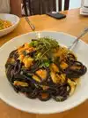 I thought the food was good, not great. Squid ink pasta needed more crab. Mussels were very tasty. Oddly, the $8 Aqua Panna still water had an odor of chlorine. I suspected tap but didn’t complain. Sketchy way to get $16 out of a customer.