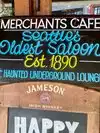 We took the Seattle ghost tour that stopped at the Merchant's Cafe and Saloon and we instantly decided to go there after for dinner. The atmosphere is amazing and historic, and the haunted basement bar was creepy and mysterious. I wish we had the guts to eat down there! The food was very tasty as if it was made fresh at home. Overalll we were pleasantly surprised and I cannot wait to have my birthday party in that haunted bar! The new owner has done an amazing job on the oldest restaurant in Seattle, a must see.