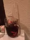 Sangria was so strong with alcohol, we had many times in Spain, we stop for lunch before the theatre, and asked for small jar and some food, we were so sick when we left the place I actually puke we never made it to the theater, totally disgusting, and so pricey, we should of give it back but he was busy and never came to ask how are we doing.