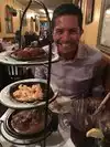 This place is very very tiny, you're sitting so close to the other table you can take your fork and reach over and grab their food. But after 5 mins the clausophobia settles and the aroma of the food distract you!! We had a very romantic dinner and I could tell the older couple next to us enjoyed our conversation lol. All good! The waiter was awesome and attentive as well. Then the food came and OMG yummy yummy yummy! There was a party in my tummy!! So good!! I'm glad we decided to eat here! We didn't have a rsvp and the place was packed but we were seated immediately. That's a pic of my very very happy food lover husband. We had the appetizer sampler and it was soooo good. Then I ordered my main dish as well.