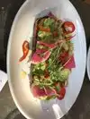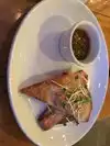 Only had their small bites, corn fritters, wings, and pimento cheese toast. all delicious, very flavorful, service is excellent. Great patio :)