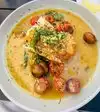 came in for a late lunch after a long flight. we preferred to sit inside as on the varenda it was far too hot. Food was good although i felt that the chef was trying to be too innovative nouvelle cuisine. Service was a bit unattentive View was very nice looking over the convention center special architecture