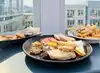 Rooftop restaurant with great atmosphere. Excellent servers. Wonderful food. Great happy hour deals. Had tacos, oysters, berry crumble, with Jasmine tea. All for around 25 bucks. It was just perfect.