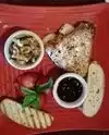 Grilled vegetable salad was made to perfection. Veggies were lightly grilled and served warm on top of a bed of greens tossed in a delicious dressing with feta, olives and sun dried tomato.